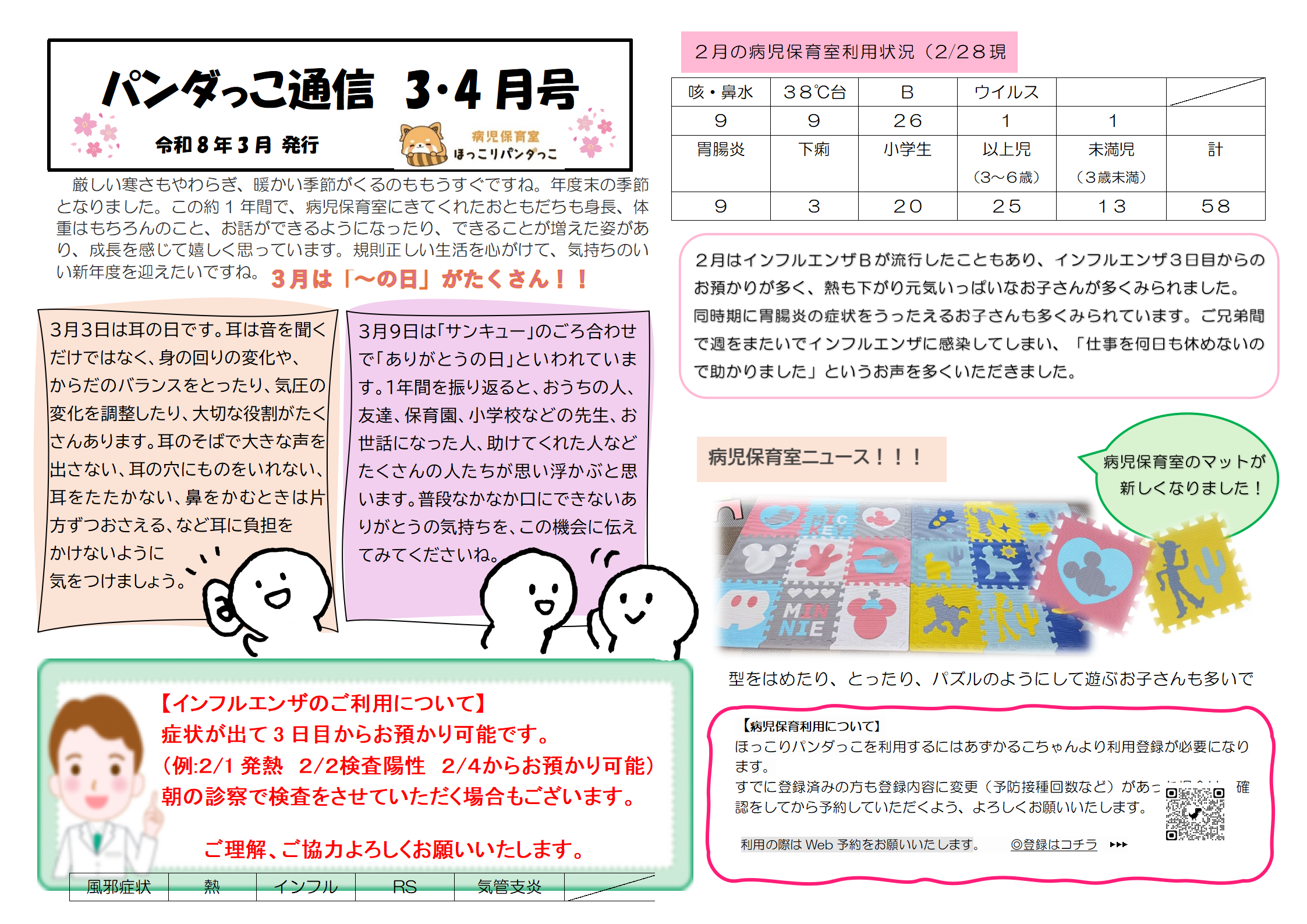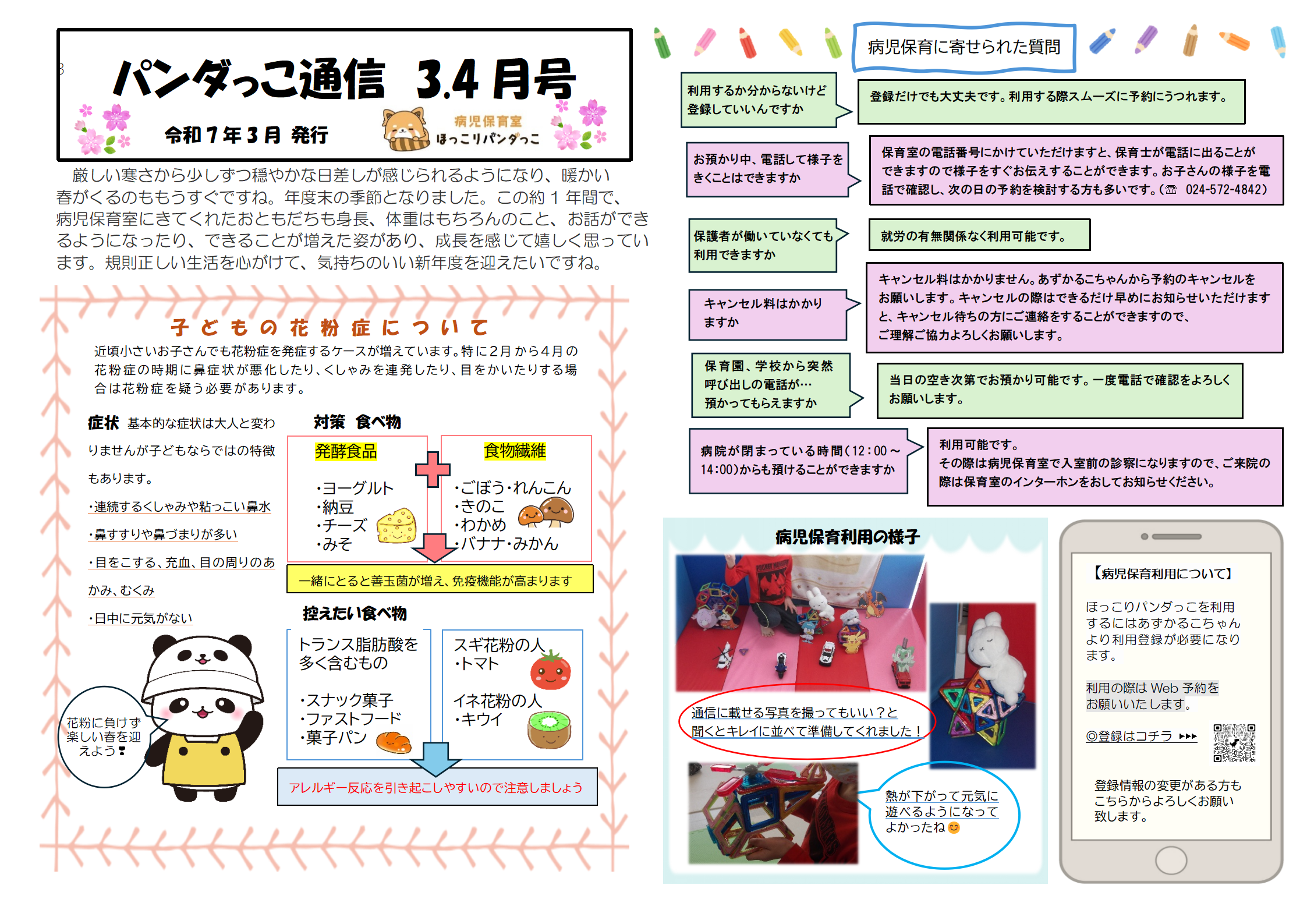 パンダっこ通信|福島市南沢又字舘ノ内の小児科 ふくしまパンダ小児科|駐車場15台完備